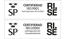 Vi är certifierade i enlighet med ISO 9001 och ISO 22000 och våra maskiner är CE-märkta.